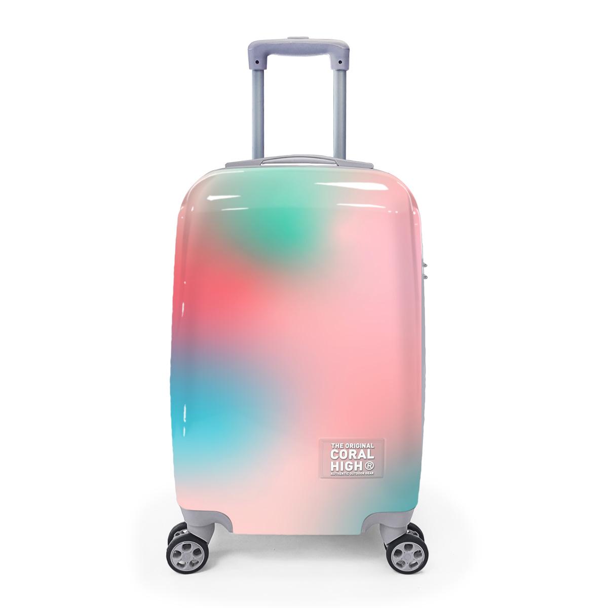 Чемодан размера ручной клади кораллового цвета с ярким рисунком (50см) 16531