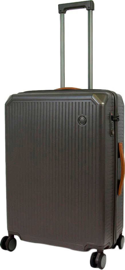 Маленький чемодан и подходящая ручная кладь. Коллекция Shogun соединяет в себе высокое качество, традиции и минимализм. Изящный внешний вид, дизайн в плотную полоску. Фактурная матовая поверхность со стальным отблеском, защищающая от царапин и следов. Верхние углы обернуты в металлические накладки — это способствует отличной буферизации. Телескопическая выдвижная ручка и кожаная, комфортная для переноса. Четыре двойных колеса, эргономичные и поворотливые. Замок с кодовой блокировкой. Боковые ножки для устойчивости. Долговечный материал — поликарбонат, прочный, стойкий к трещинам, ударам и падениям, легкий в уходе. Размеры 48x68x25 см., объем 73 л, вес — 3.9 кг.