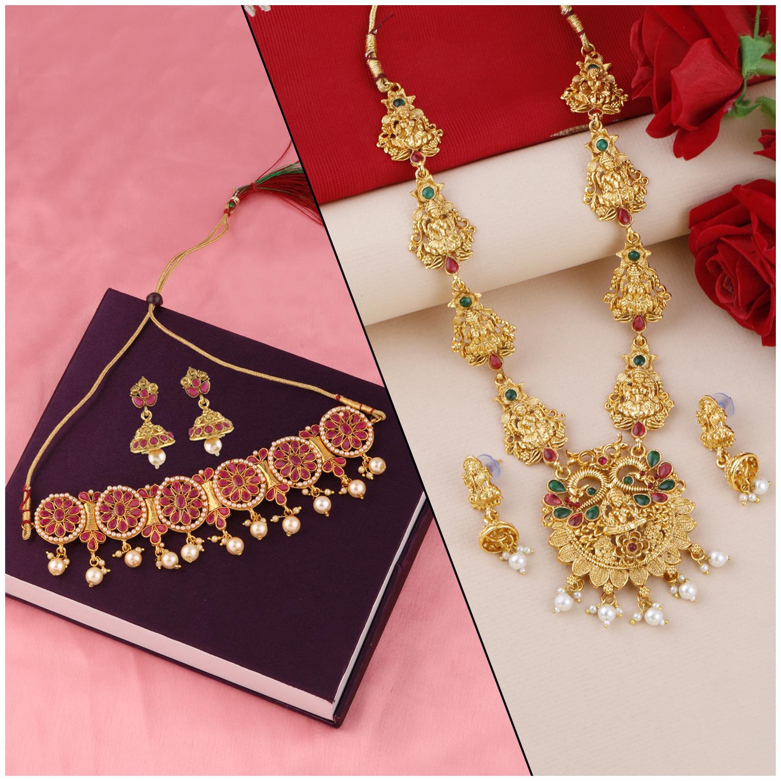 Silver Shine Gold Plated Designer Traditional Temple Set With Choker Necklace Jewellery Set For Women Men