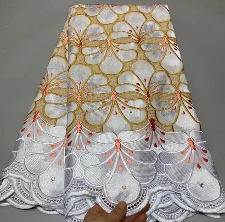 High quality popular dubai cotton lace fabric embroidery voile lace for women dress, Black, white, other