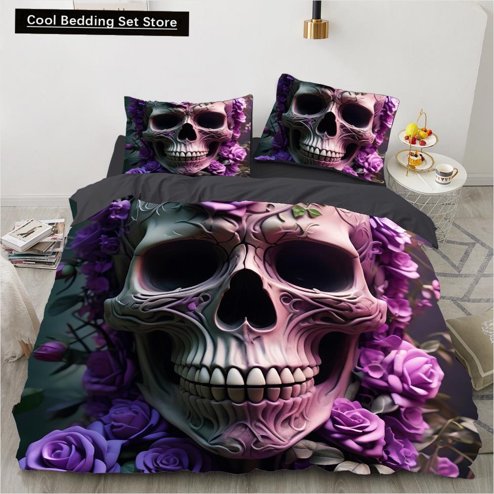 Череп Свадебный мультфильм Одеяло Комплекты постельного белья Двуспальный Queen King Twin Полноразмерный пододеяльник Комплект постельного белья для девочек Белое постельное белье EU single(135x200cm)