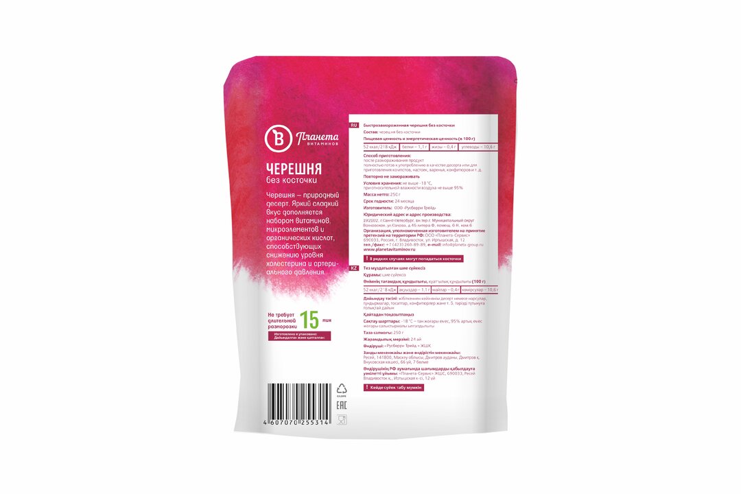 Черешня Планета Витаминов Гурманика без косточек быстрозамороженная 250 г