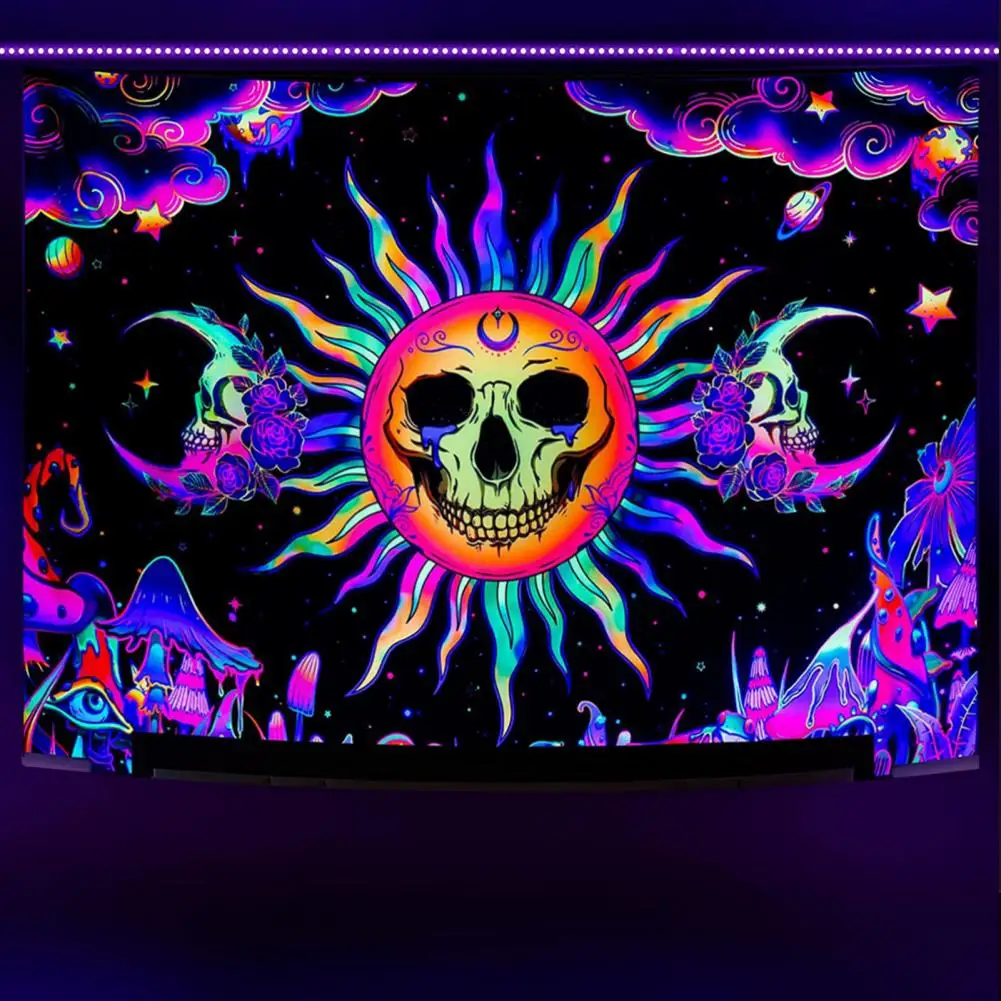 Черная Женская Гобеленовая ткань из полиэстера, гобелен, светящийся в темноте, гобелен с черепом на Хэллоуин, искусство стен с УФ-эффектом