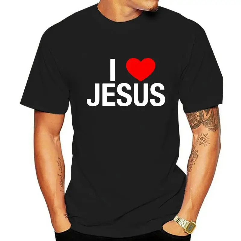 Черная Мужская футболка с надписью «Я люблю Иисуса-я сердце Исуса», модель S-3Xl Us 100%, хлопковая Праздничная футболка