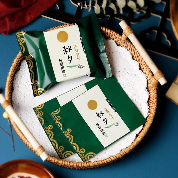 gift wrap aq 100pcs/lot dark green border white stitching chinese style mid-autumn festival mooncake packaging bag large biscuits