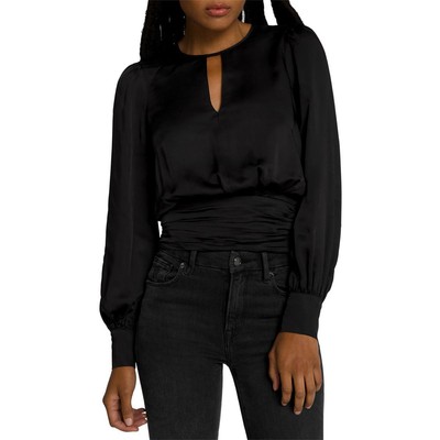 Черная атласная офисная блузка с замочной скважиной Good American Womens BHFO 0785, Черный