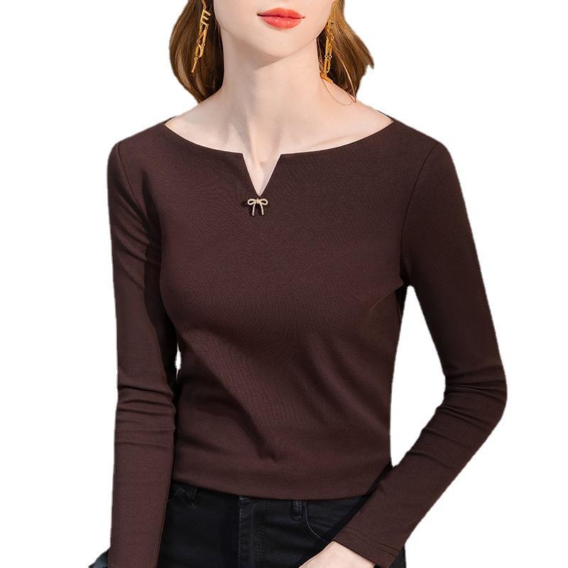 Черная базовая рубашка для женщин на весну и осень, новый стиль женской одежды, одноплечевая хлопковая футболка, однотонный топ с внутренней стороны талии 3XL