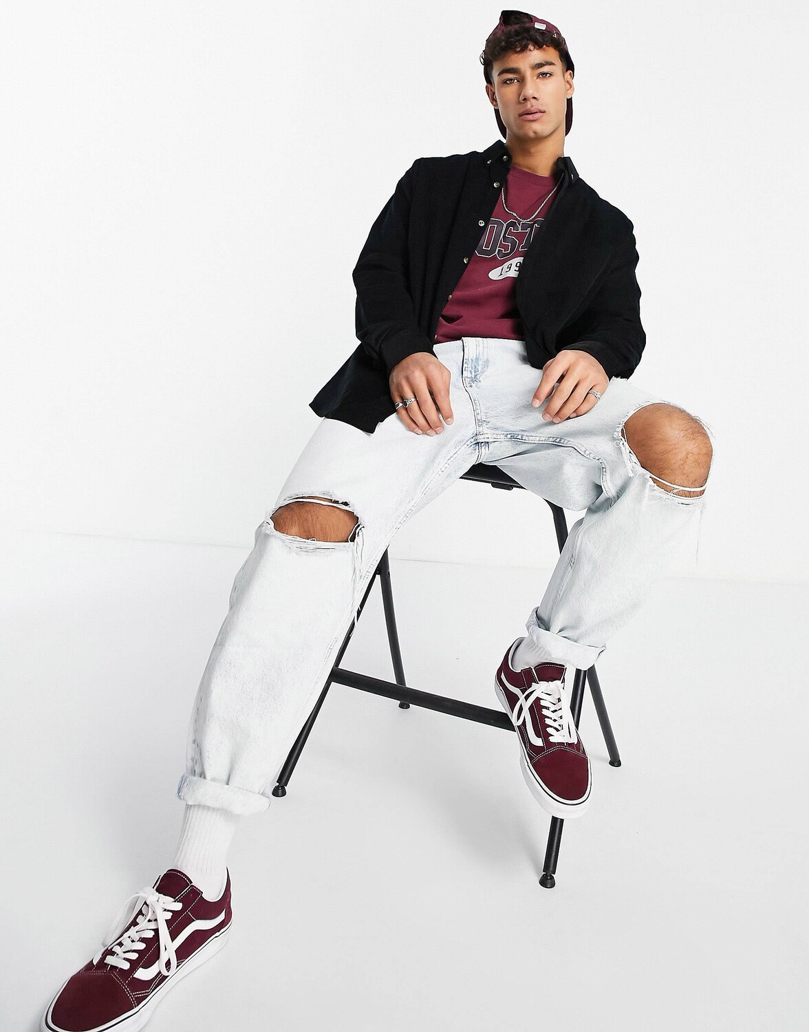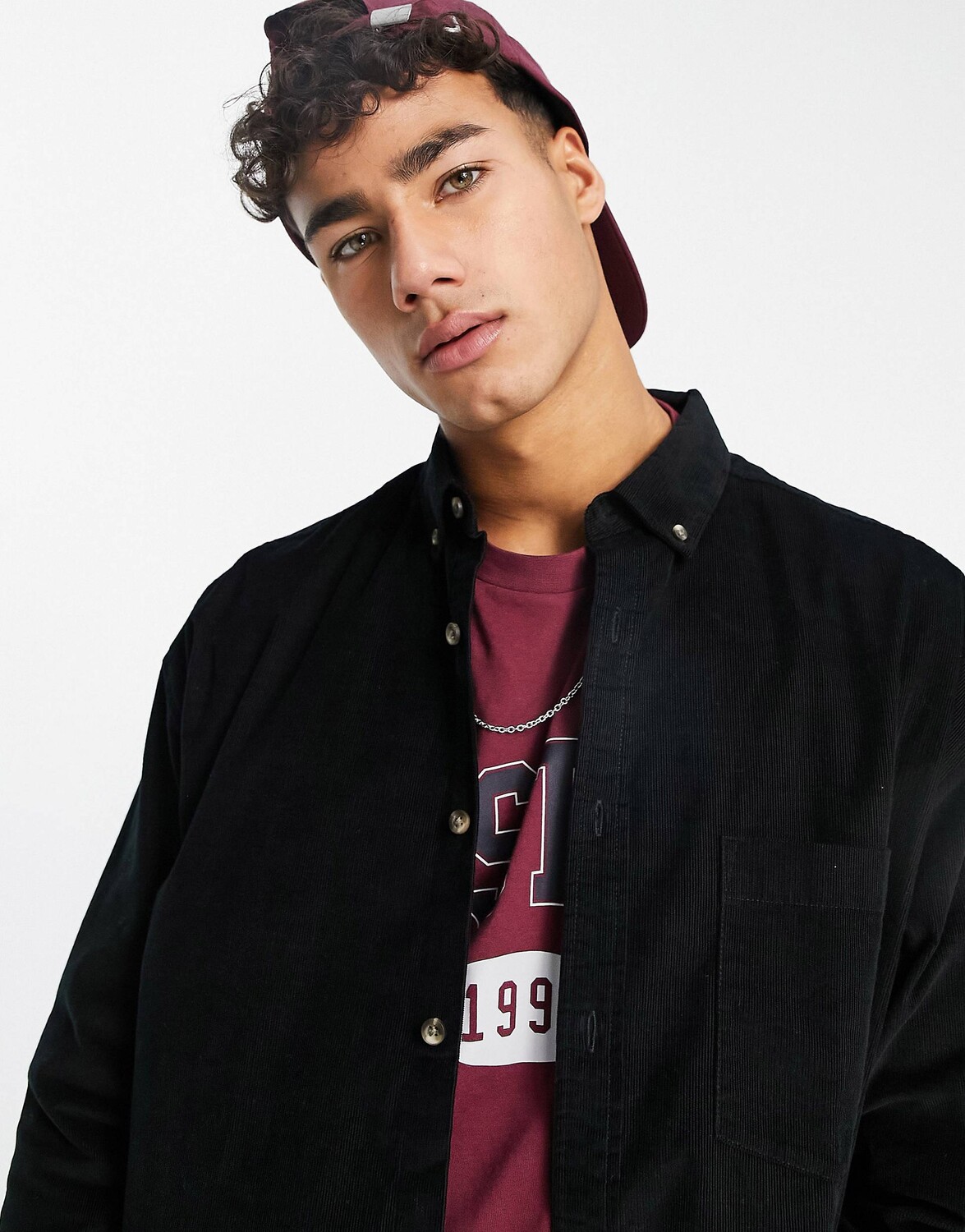Черная вельветовая рубашка свободного кроя в стиле 90-х ASOS DESIGN