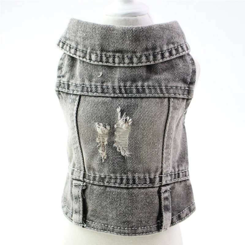 Черная джинсовая куртка с двумя отверстиями для маленьких и средних собак, джинсовая рубашка, пальто без рукавов с лацканами для щенков