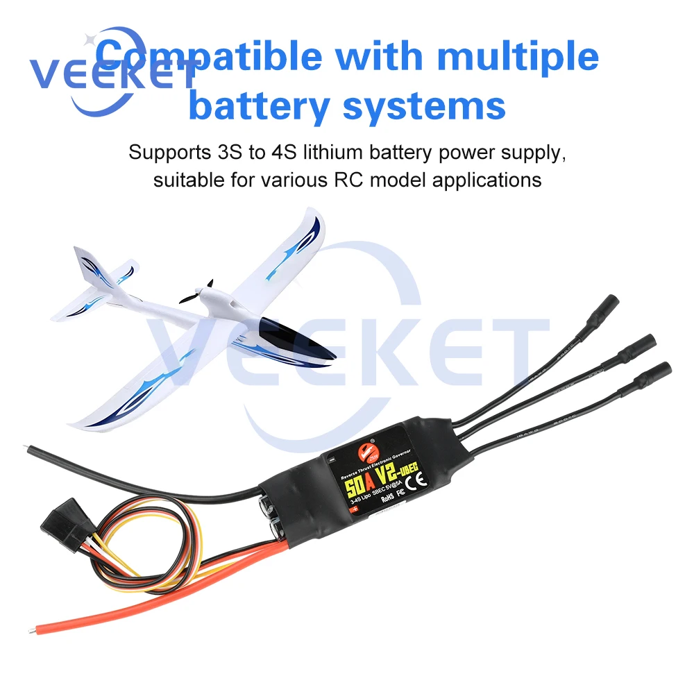 40A 50A Bidirectional Brushless ESC with Reverse Thrust for RC FPV Fixed-Wing Aircraft Advanced Motor Control