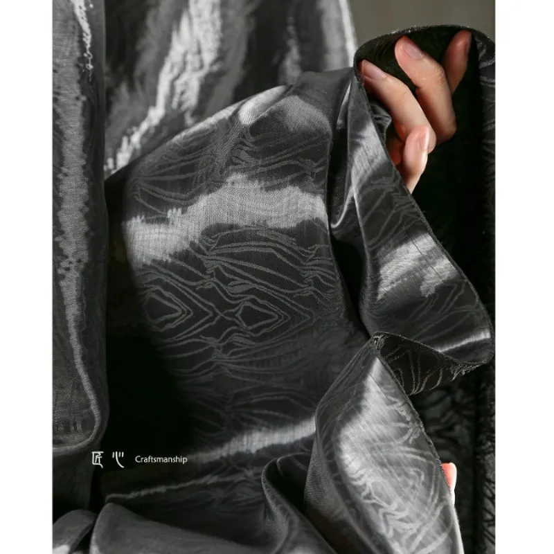 Черная жидкая Металлик Жаккардовая Супер Блестящая кристальная Атласная блестящая ткань дизайнерская ткань