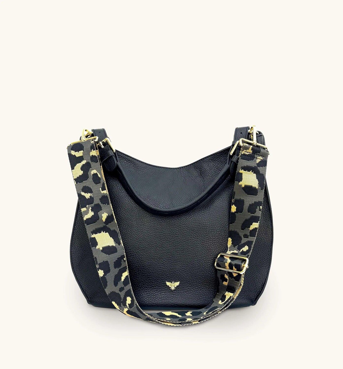 Черная кожаная сумка Harriet с серым леопардовым ремешком Apatchy London, черный