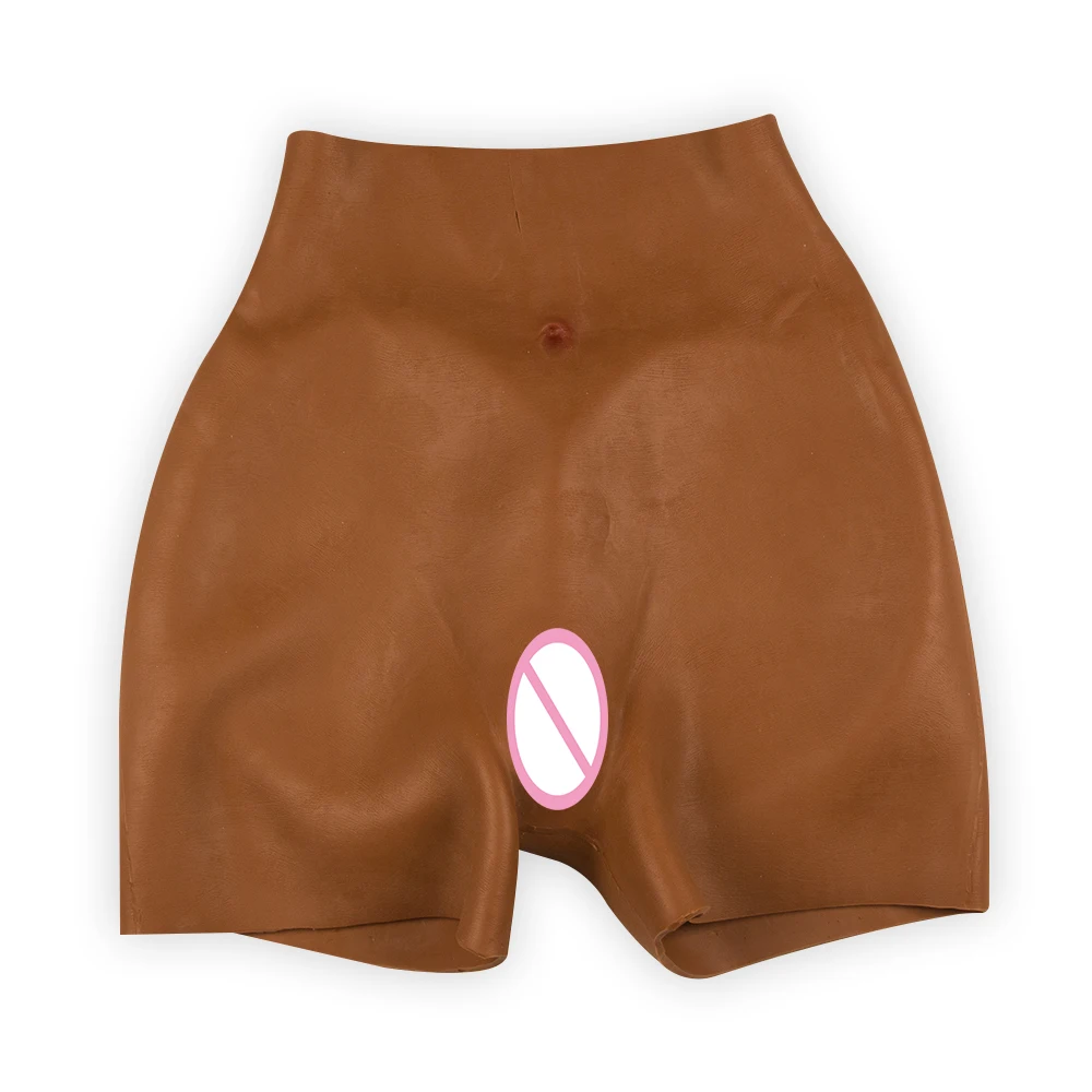 Черная кожа силиконовые реалистичные вагинальные брюки Shemale Трансвестит киска брюки сексуальное поддельное нижнее белье увеличитель беде...