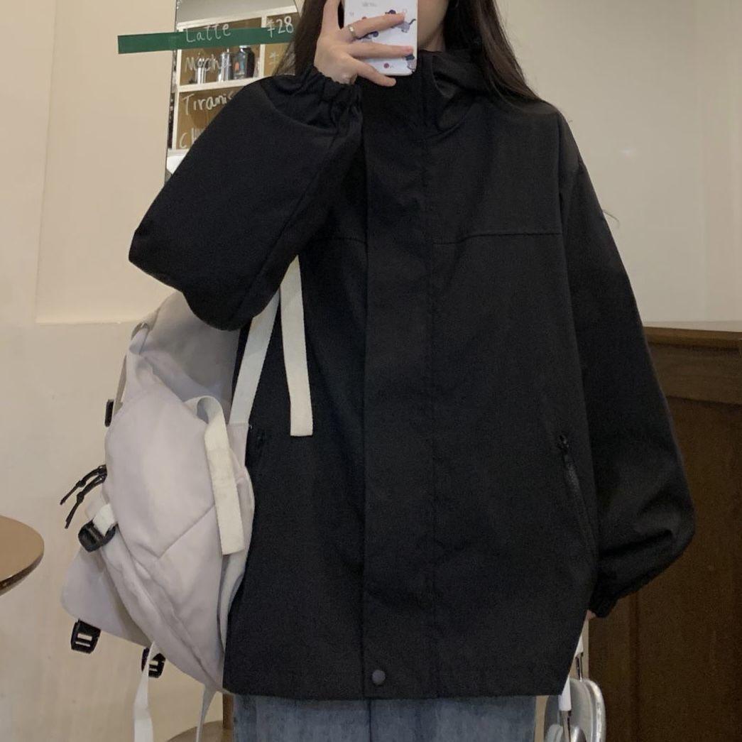 Черная куртка штурмовика весна осень тонкие ветрозащитные пальто повседневные свободные на молнии с капюшоном рабочая одежда тренчи женские куртки 2XL чёрный