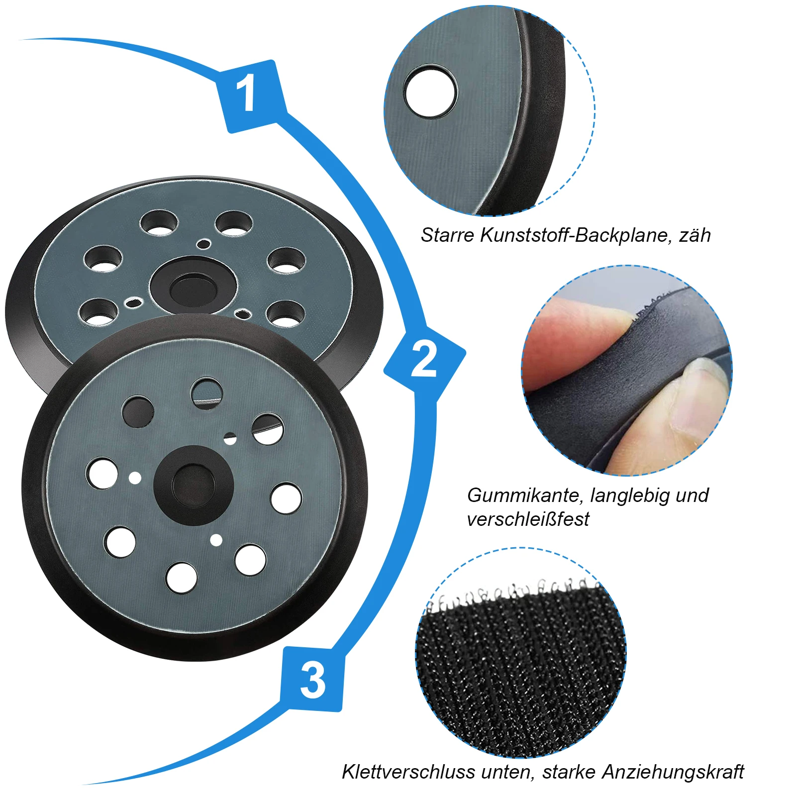 Черная легкая в использовании 5-дюймовая шлифовальная накладка с крючком и петлей, шлифовальные подложки, резиновая накладка для кемпинга