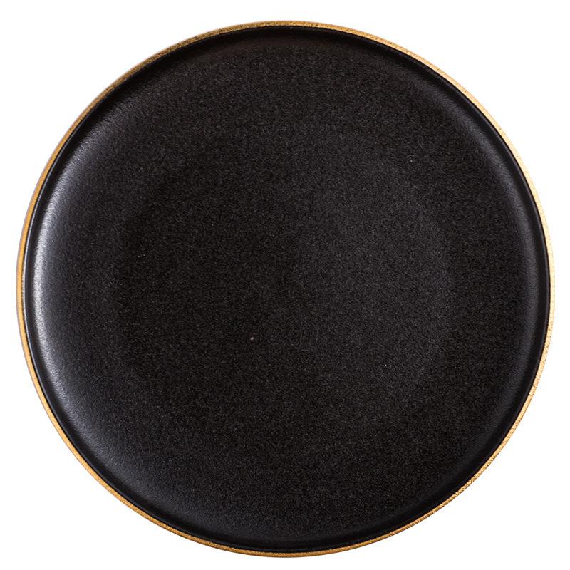 Черная матовая тарелка для стейка, позолоченная керамическая круглая тарелка для западной кухни, домашняя посуда для кухни, ресторана, отеля, кухни