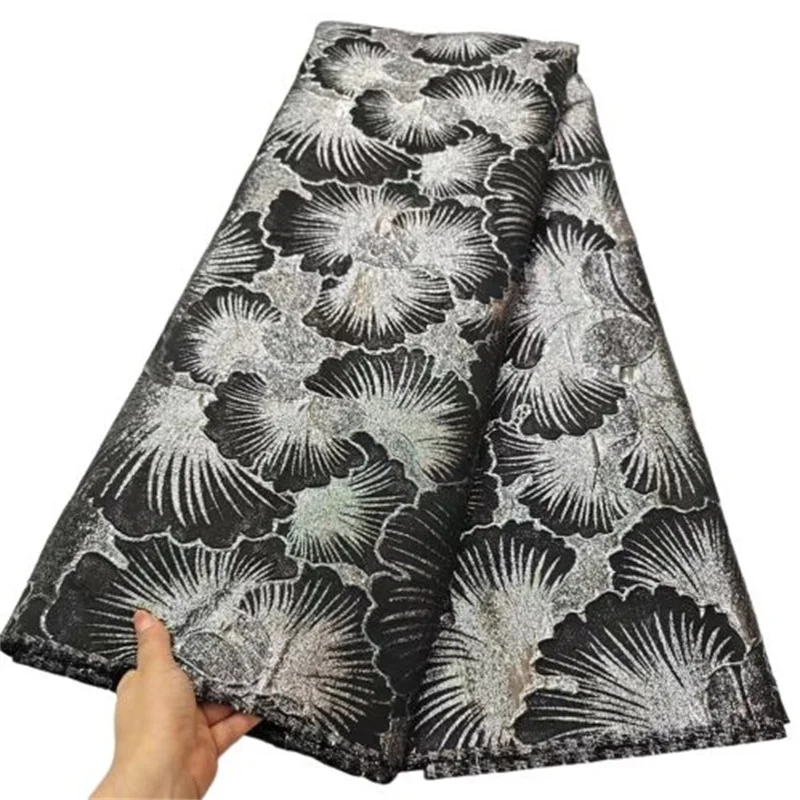 Черная модная женская жаккардовая кружевная ткань, кружевная ткань из органзы, 5 ярдов, французская нигерийская Тюлевая кружевная ткань, «сделай сам» для шитья
