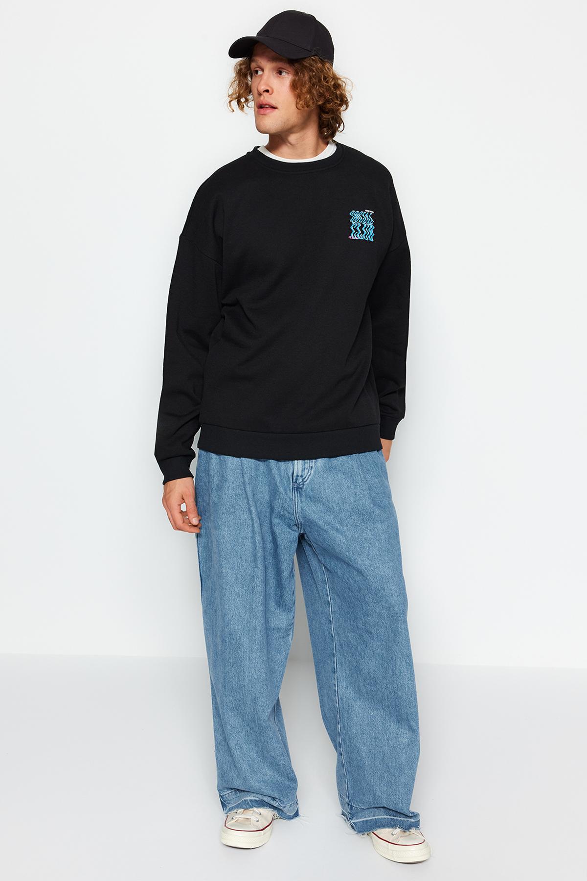 Черная мужская более экологичная толстовка большого размера с принтом на спине...