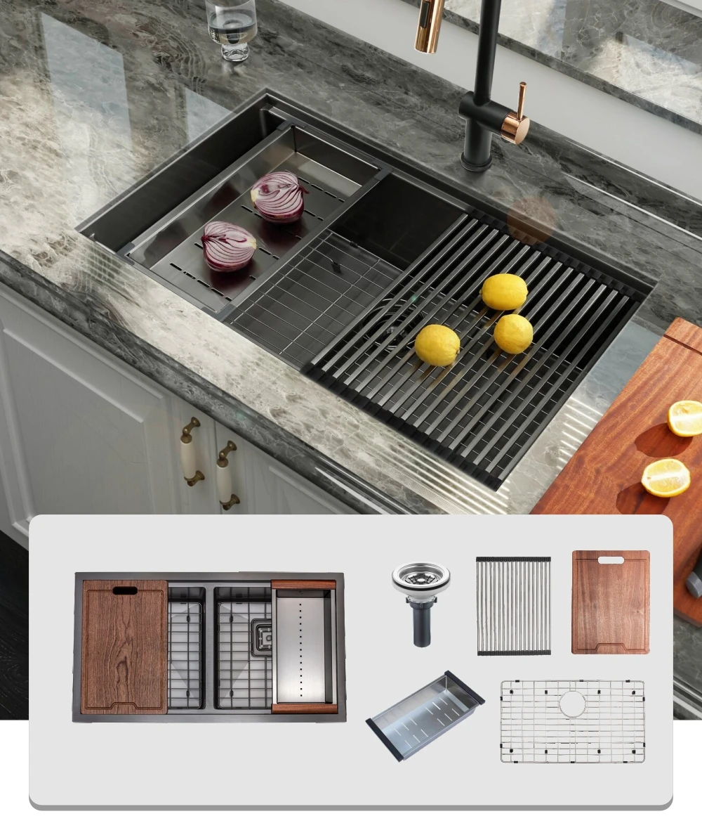 Черная нано-рабочая станция для кухонных раковин Undermount из нержавеющей стали с аксессуарами