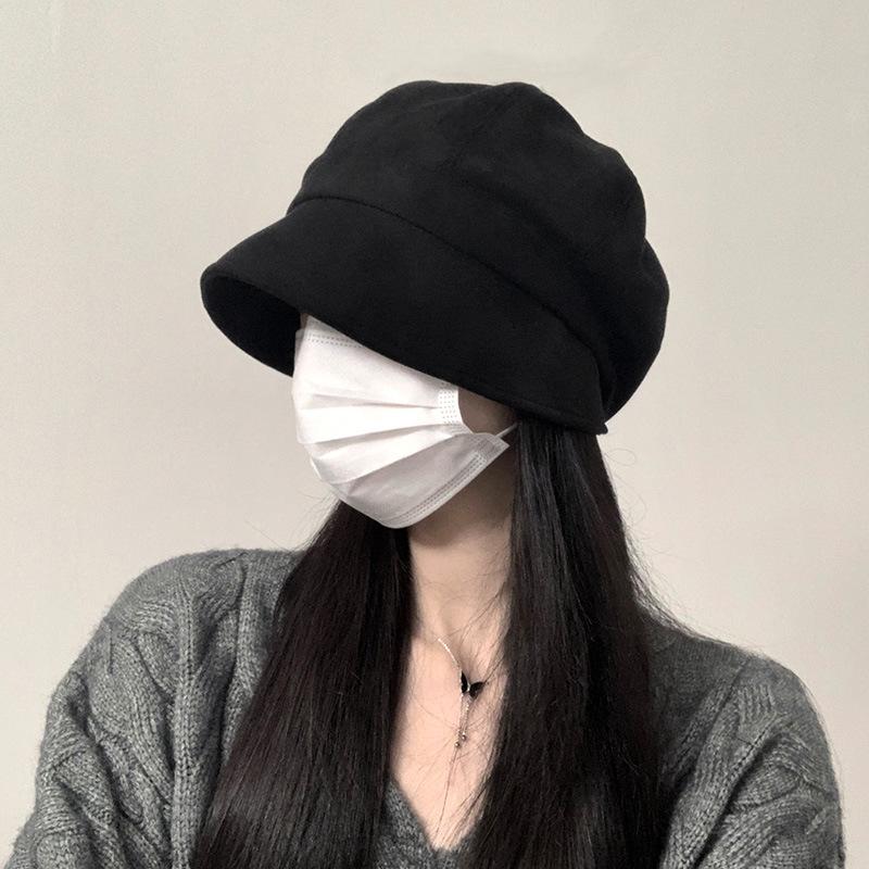 Черная панама женская осенне-зимняя новая большой обхват головы однотонная для лица ворсовая теплая шапка показывает маленькое ощущение зрелости average size (55-58cm) can generally be worn