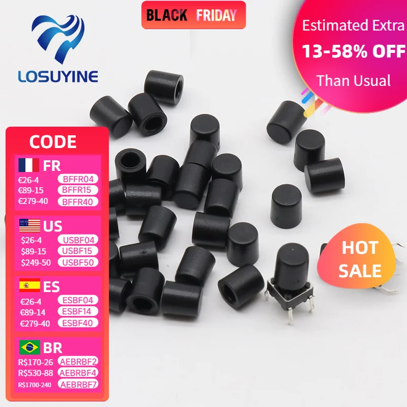 Черная пластиковая крышка G62 для 6*6 мм тактильная крышка кнопочного переключателя 100 шт./партия
