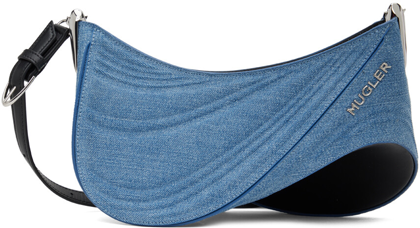 Черная и синяя джинсовая сумка Spiral Curve 01 среднего размера Mugler, цвет Medium blue/Black