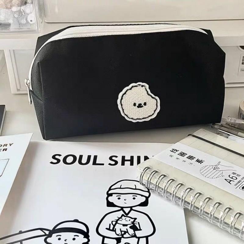 Черная сумка для ручек с изображением щенка, школьная сумка для канцелярских принадлежностей, пенал большой емкости, органайзер для канцелярских принадлежностей для офиса и школы
