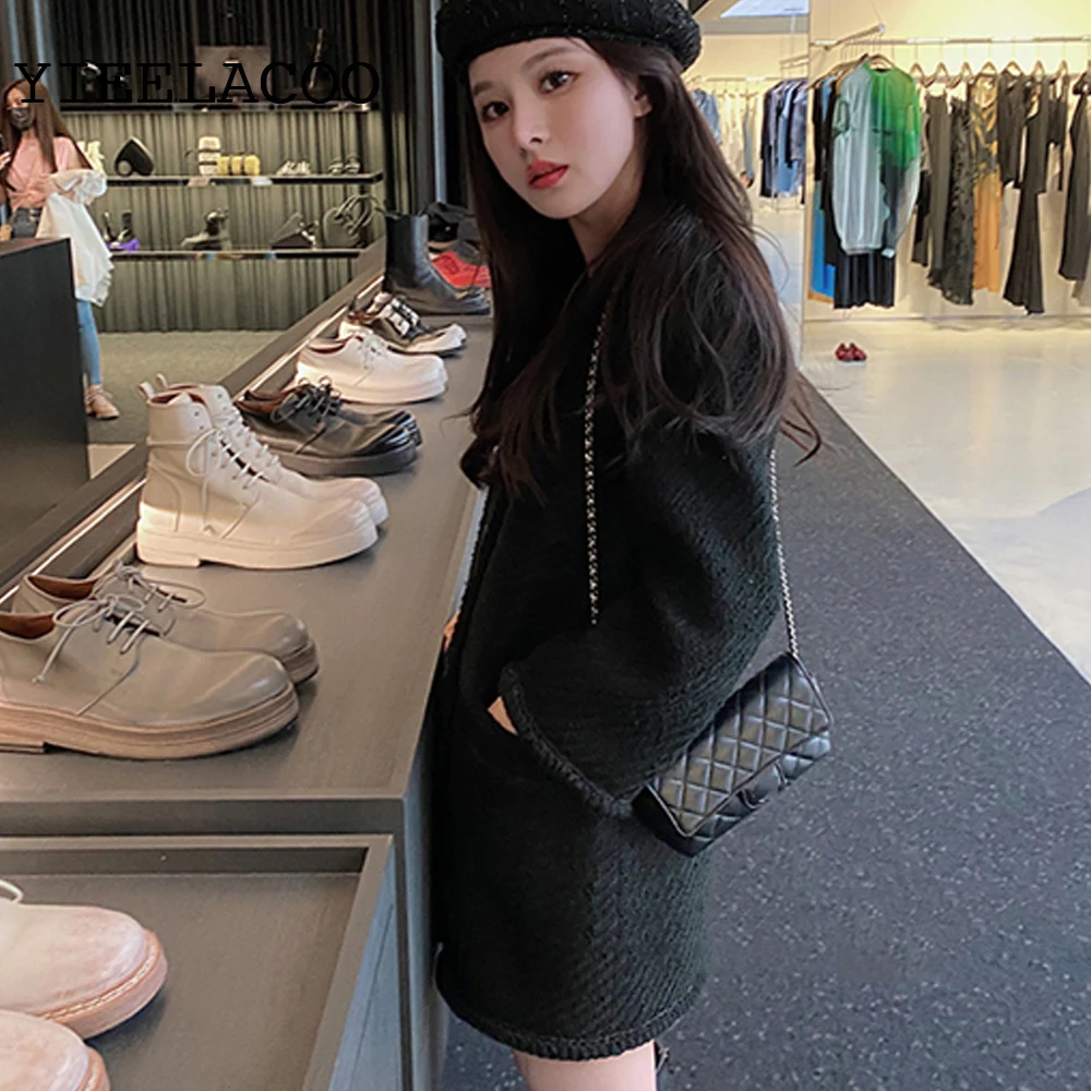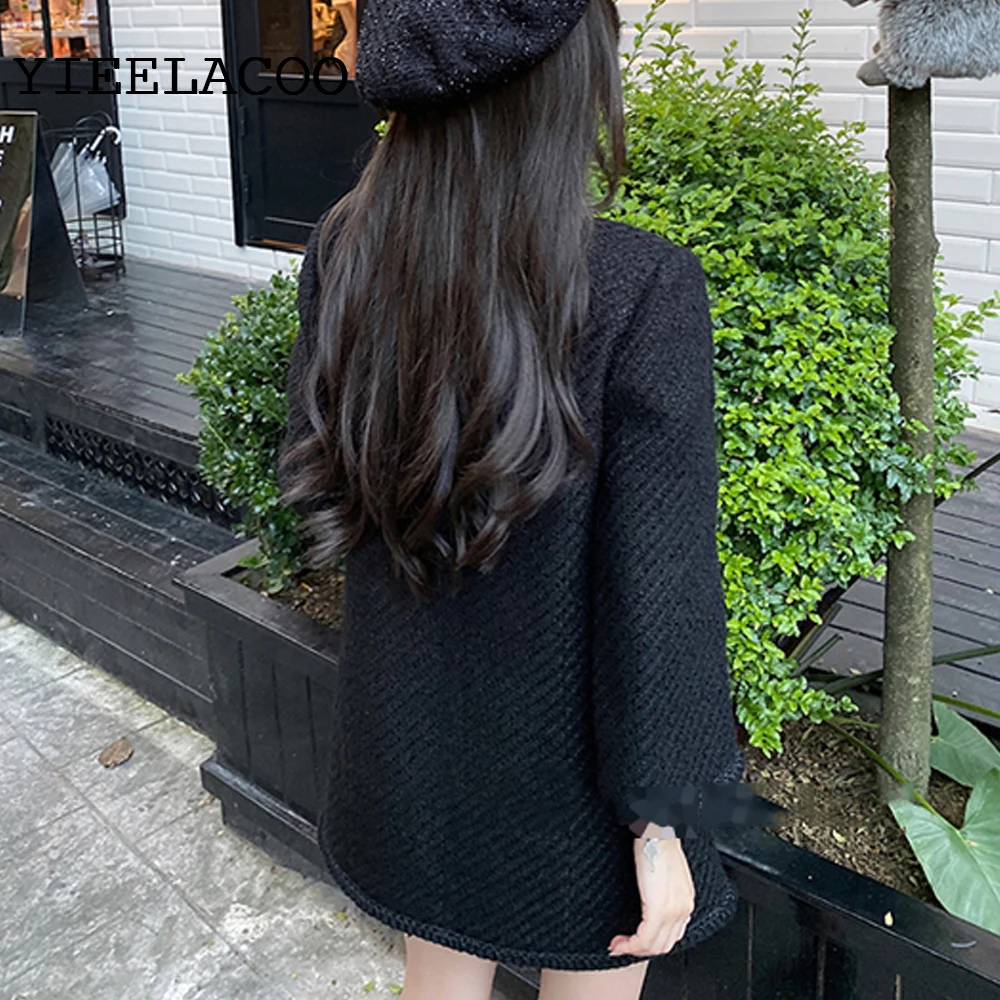 Черная твидовая Женская куртка, женское цельное пальто на весну и осень, женская маленькая дутая куртка, пальто