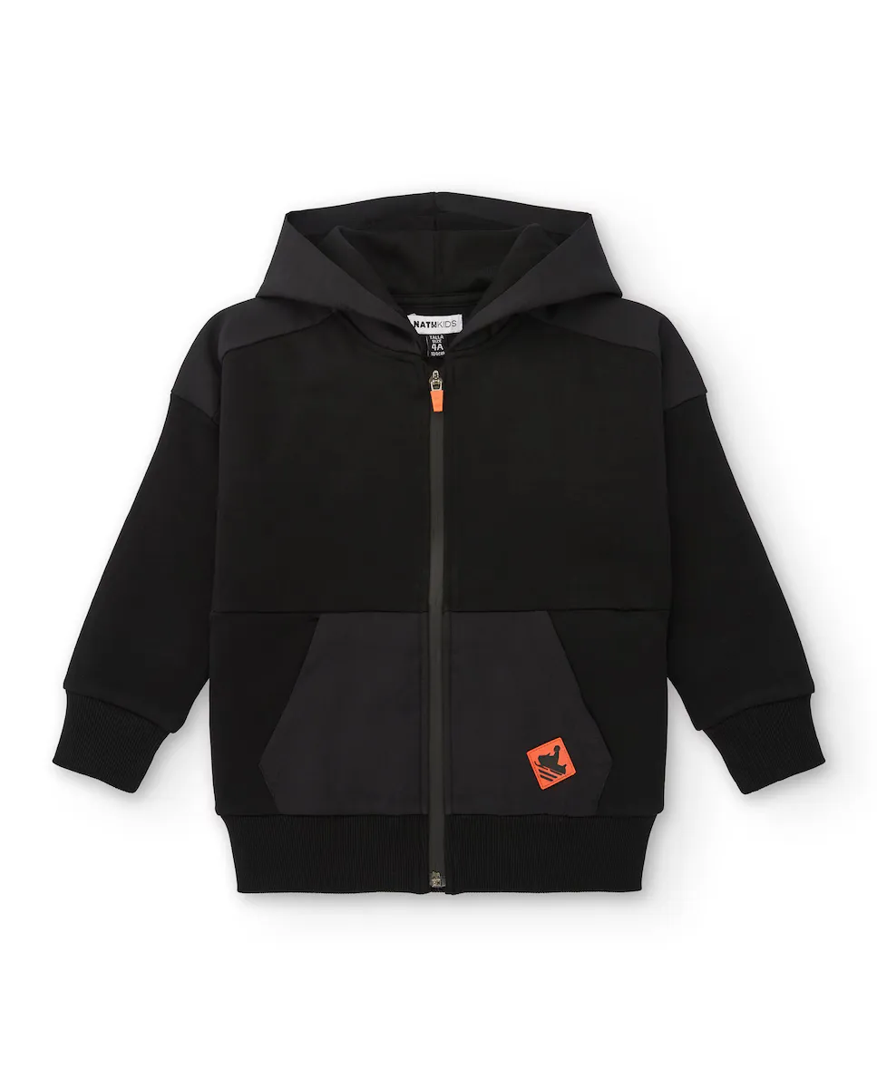 Черная толстовка для мальчика с капюшоном и молнией Tuc tuc