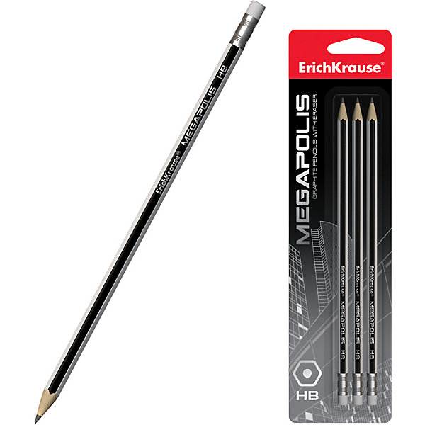Чернографитный карандаш ErichKrause MEGAPOLIS HB, Черный