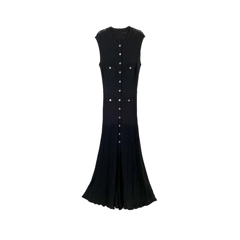 Черное ажурное платье женское модное трикотажное тонкое вечернее платье без рукавов размера плюс XS чёрный