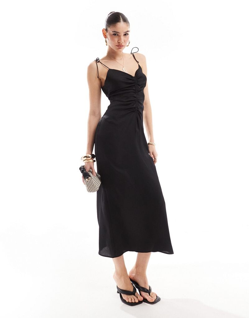 Платья от BershkaБНО, вот и всеV-образный вырезЗавязки на бретелях Сборка спереди.Застежка-молния сзади.Обычная посадка.