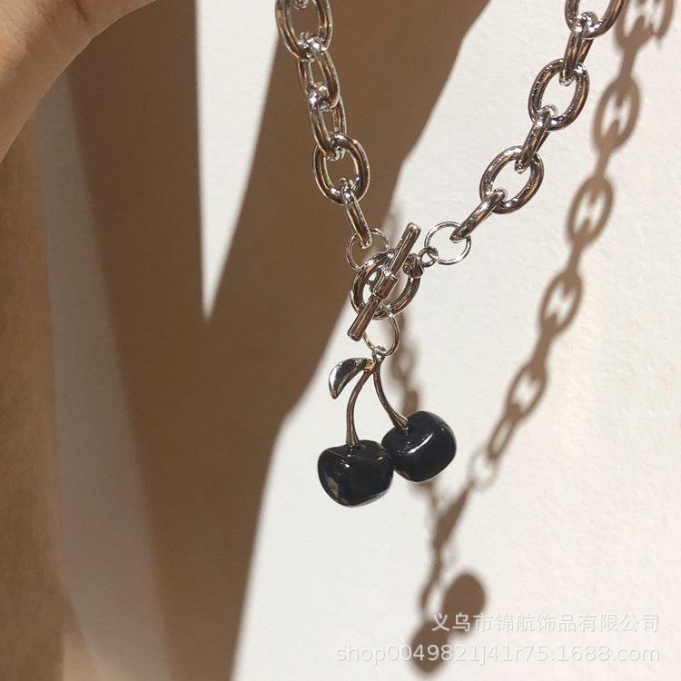 Черное вишневое ожерелье женское прилив хип-хоп титановая ключичная цепочка аксессуары холодный ветер чокер