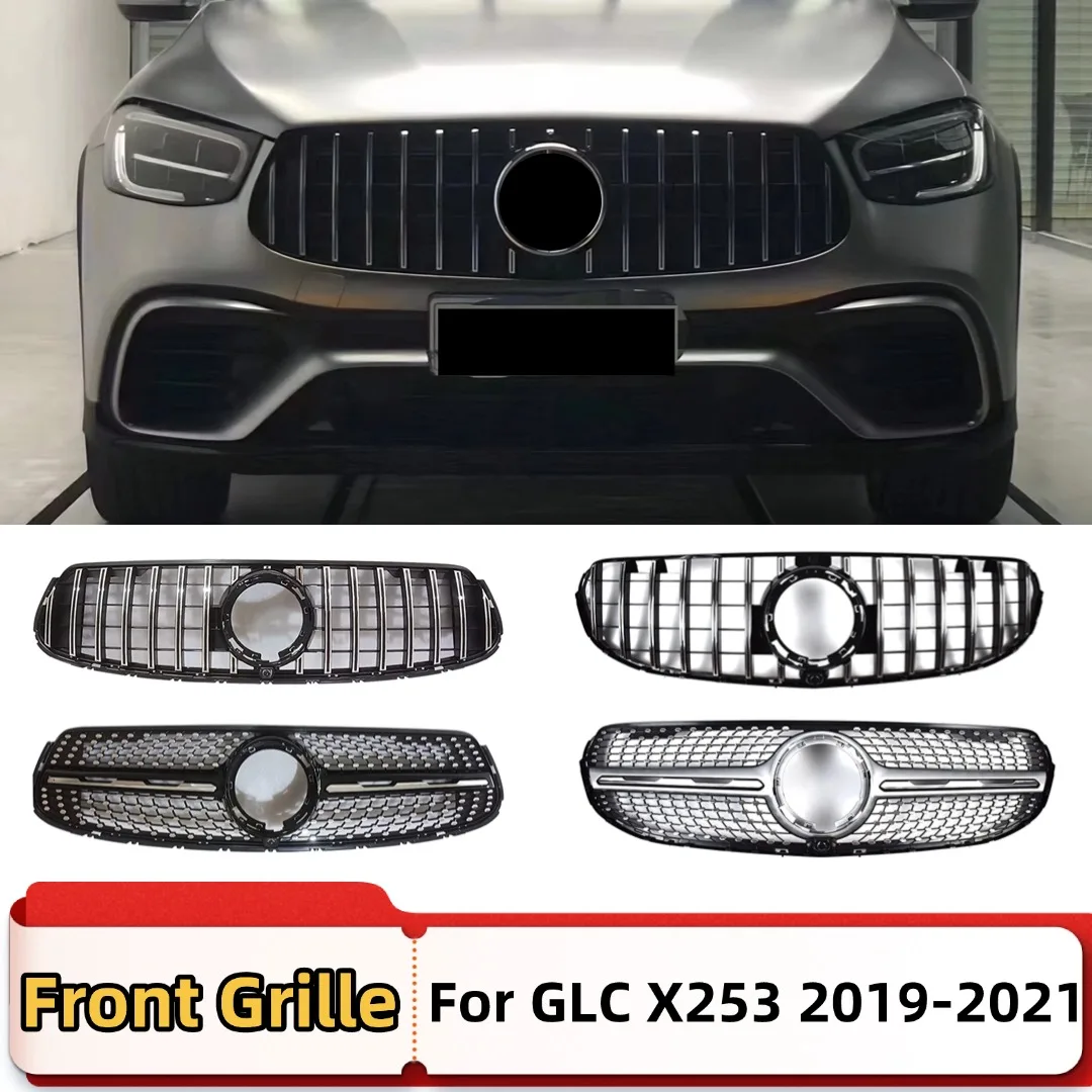 Front Inlet Grille Bumper Grill Middle Mesh Tuning Accessories For Mercedes Benz GLC X253 2019-2021 GT Diamond Style Body Kit