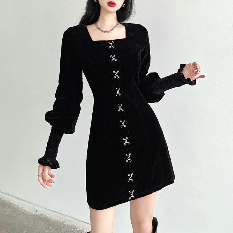Черное облегающее платье с завязками, осеннее базовое бархатное мини-платье с длинными рукавами, женские облегающие повседневные зимние модные платья M чёрный