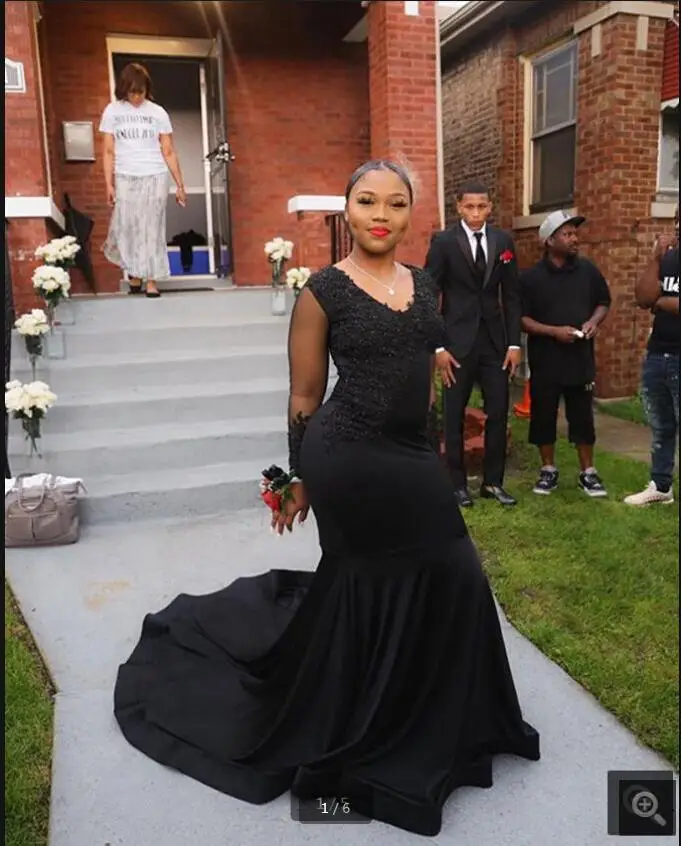 Черное платье для выпускного вечера, модель 2020 года, платье для выпускного вечера с кружевной аппликацией и бисером, платье для южноафрикан...