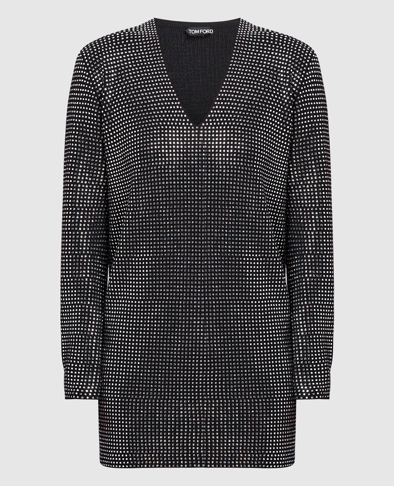 Черное платье из кашемира с кристаллами, Черный, Коктейльные платья