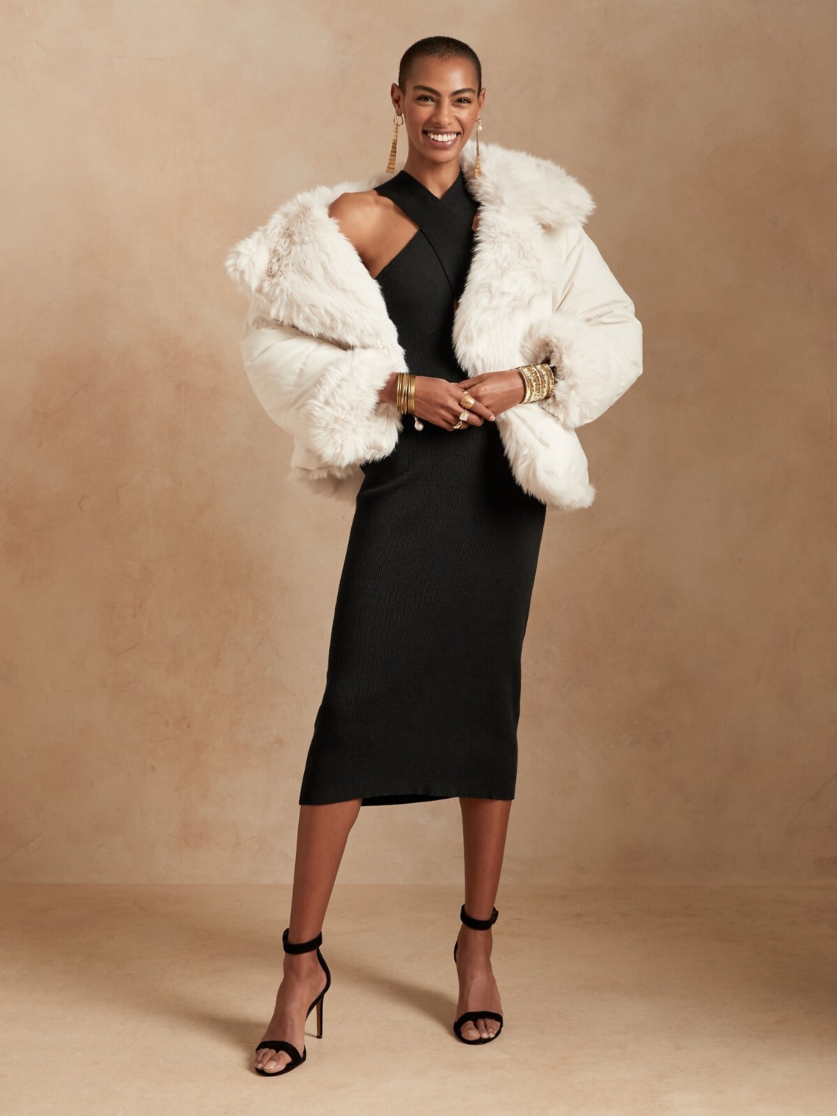 Черное платье-свитер с лямкой на бретельках Banana Republic, размер L, миниатюрный, Черный
