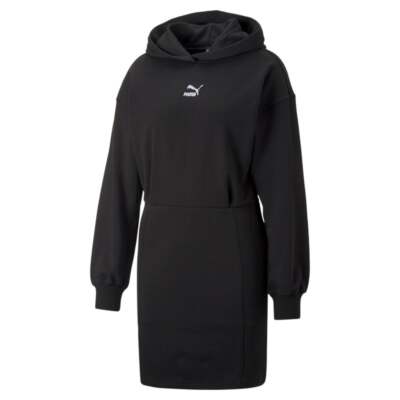 Черное повседневное женское платье с капюшоном Puma Classics с длинным рукавом 53568701, Черный