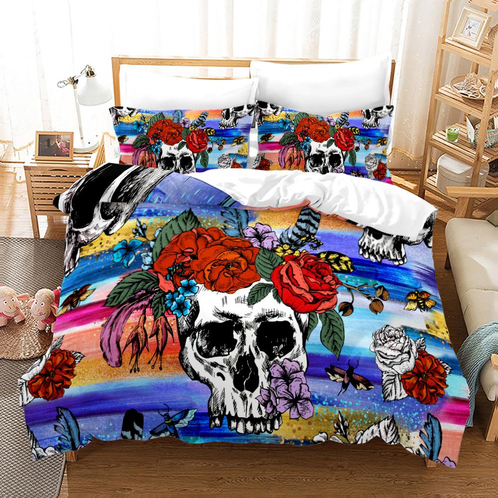Черное постельное белье с принтом черепа, односпальная двуспальная кровать, полноразмерная наволочка и пододеяльник, 2 или 3 чехла с принтом черепа, удобное украшение для дома AU Single 140x210cm