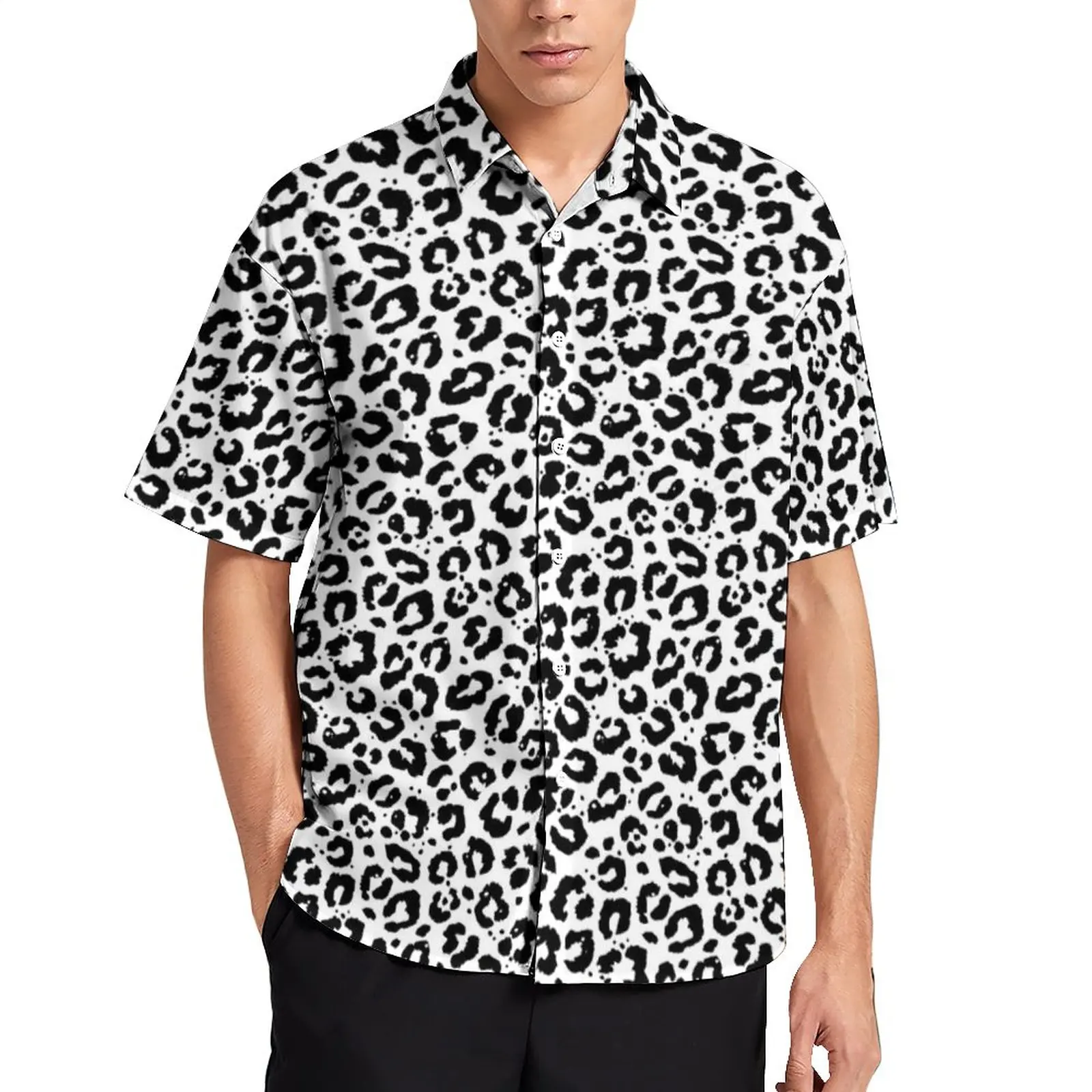 Черно-белая Повседневная рубашка с леопардовым принтом, Пляжная Свободная рубашка в стиле снежного гепарда, Гавайские блузки Y2K, дизайнерск...