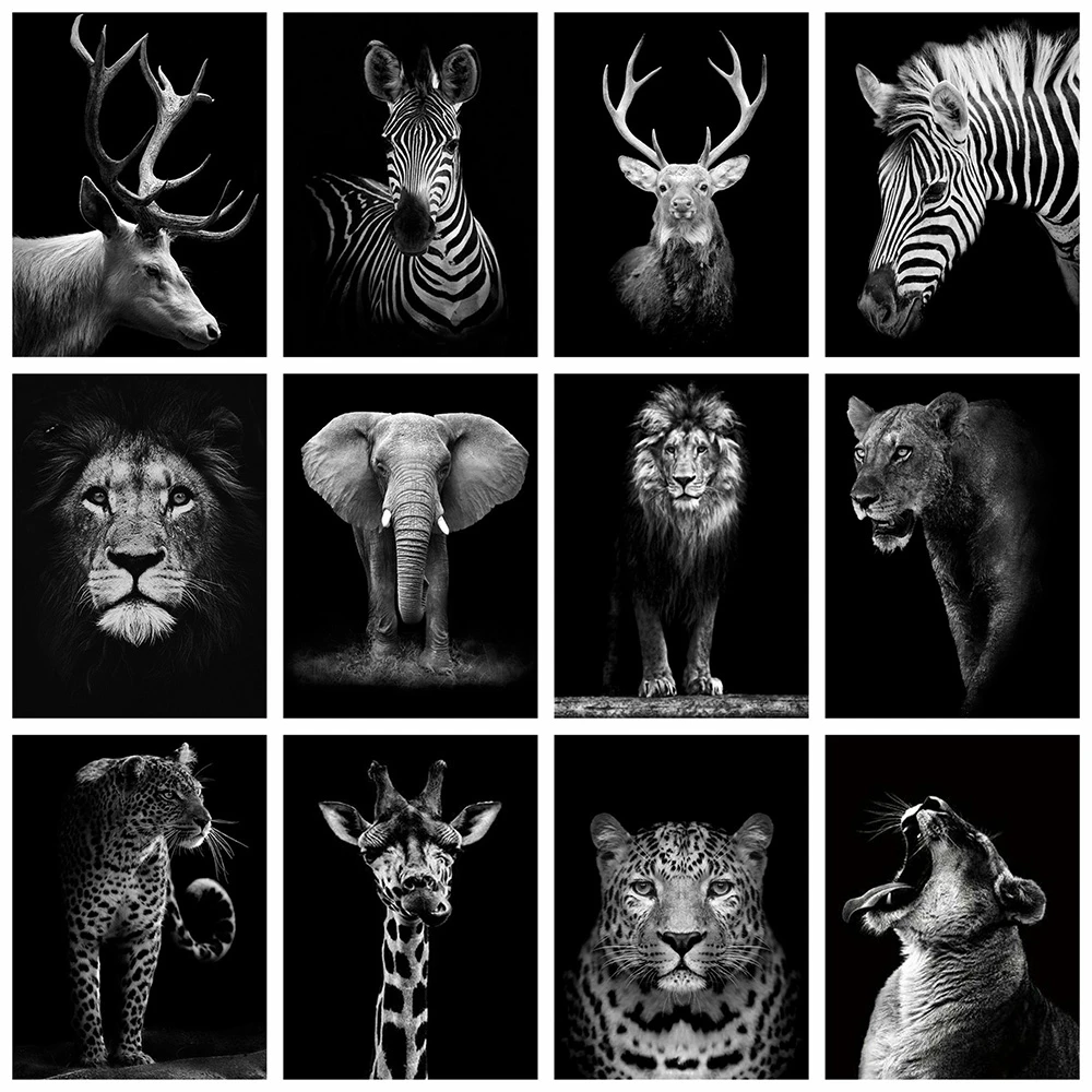 Черно-белая алмазная живопись, наборы для вышивки крестиком, алмазная вышивка с животными, полноразмерная Круглая Мозаика, набор для украше...