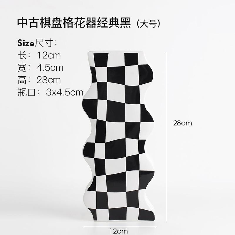 Черно-белая керамическая ваза с декором в шахматном порядке Высококачественная ваза для сухоцветов Цветочная композиция для гостиной Украшение для дома