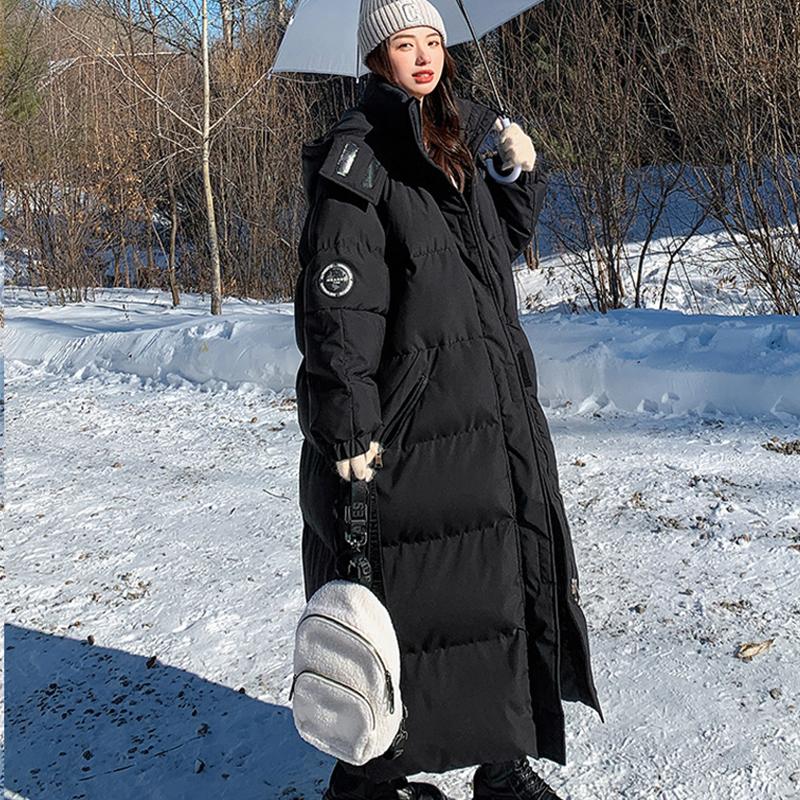 Черно-белая куртка из хлопка, женская осенне-зимняя куртка корейского производства, свободная рабочая одежда, длинная куртка выше колена из хлопка, повседневная куртка из хлопка M чёрный