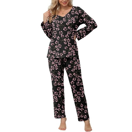 Anygrew Women s Pajamas Set Long Sleeve Shirts and Long Pants 2 Piece Pjs Sleepwear with Pockets