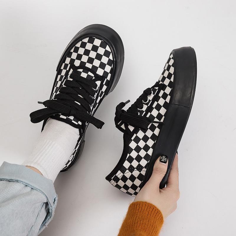 Черно-белые клетчатые парусиновые туфли женские модные новые кеды весенние туфли на платформе с увеличением роста туфли с большой головой милые туфли 37 чёрный