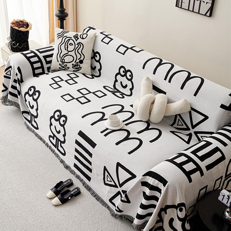 Черно-белый мультяшный милый чехол для дивана с кисточками универсальное полотенце для дивана-кровати коврик для пикника на открытом воздухе 90X90CM