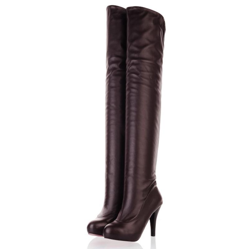 Черные Белые Ботфорты выше колена Женские Зимние Туфли для вечеринки Тонкий каблук Эластичные Женские Длинные Сапоги Большой размер 45 Обувь 43 коричневый