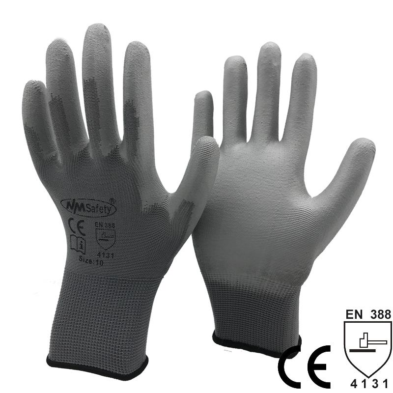 Черные ПУ нитриловые промышленные защитные рабочие перчатки с нейлоновыми хлопковыми трикотажными перчатками с покрытием для рук S