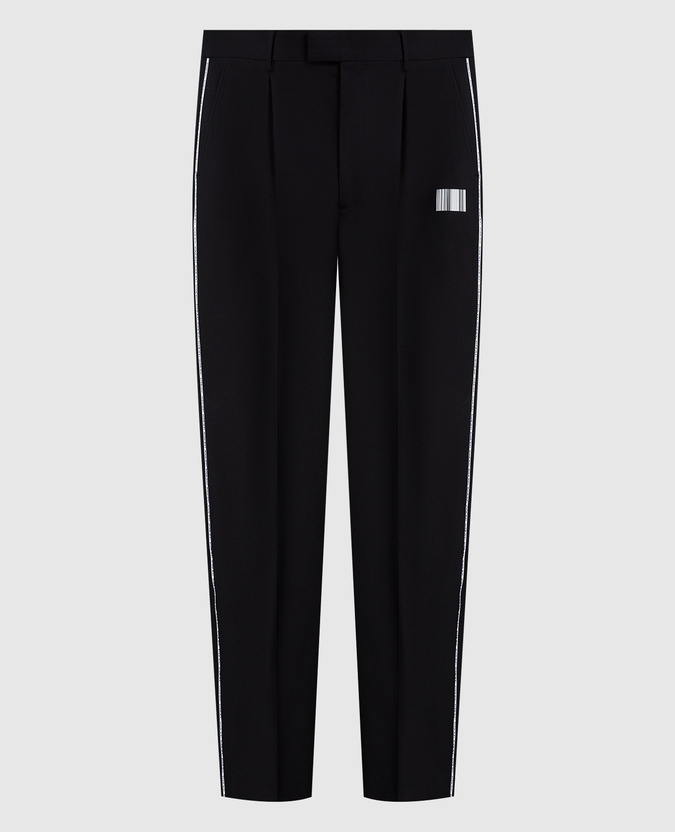 Черные брюки из шерсти с контрастными лампасами, Черный, Зауженные брюки
